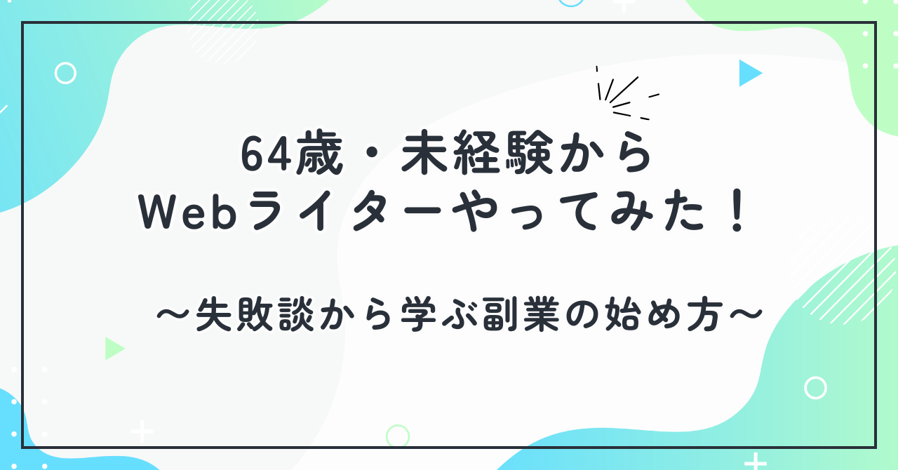 今回は、64歳・未経験から始めたWebライターの失敗談をお話しさせていただきました。